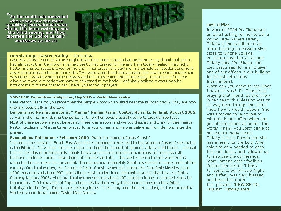 Testimonies   Prayer   Praise   Word   Contact